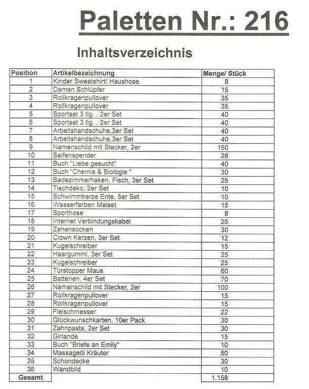 İçindekiler palet: 1.158 St çeşitli makaleler!